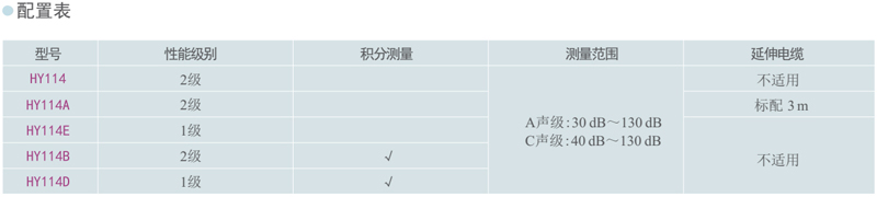 HY114系列聲級計使用參數(shù):