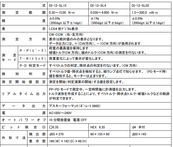 日本cedar思達DI-12-SL15扭力測試儀產品參數: